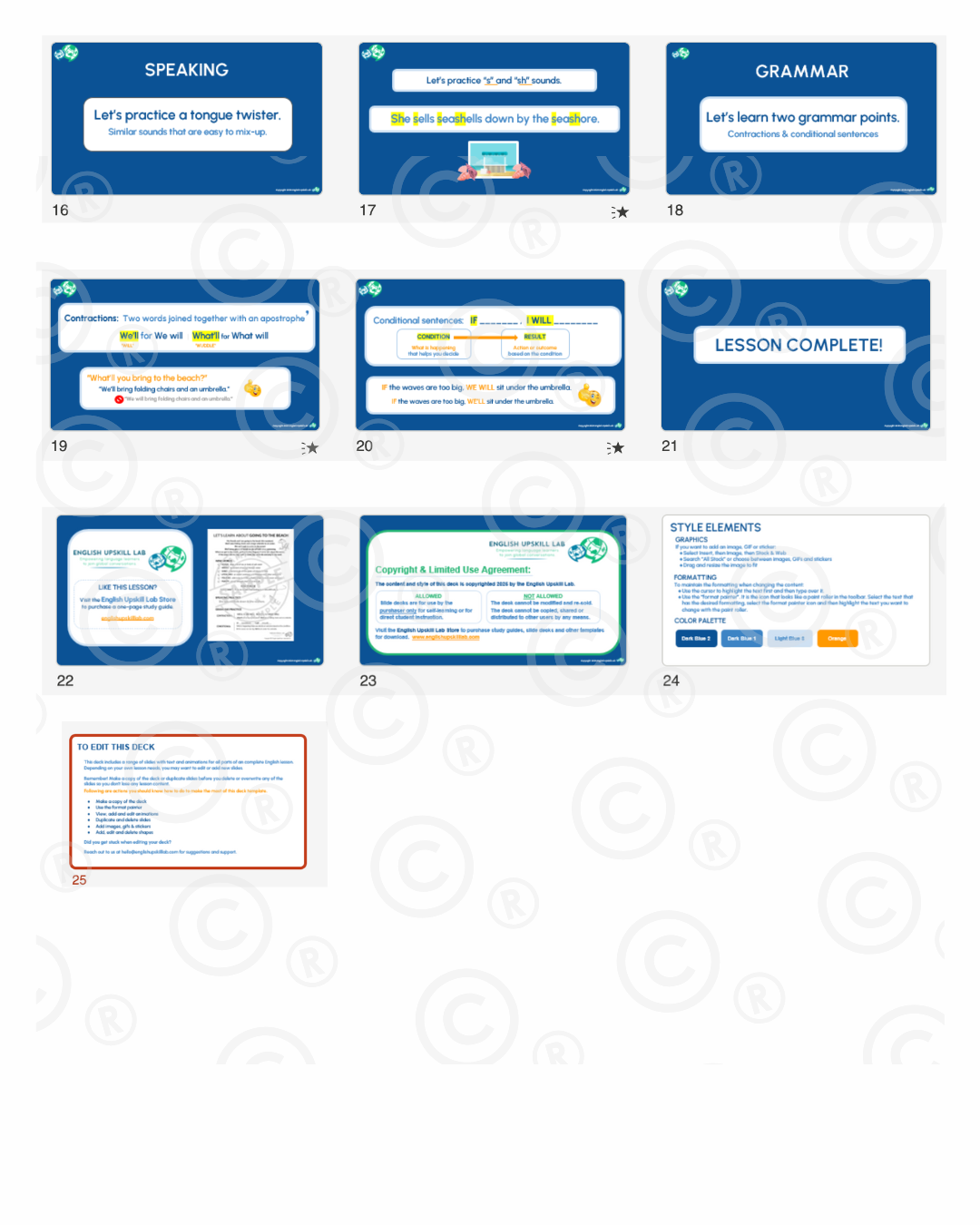 The structure, format and style of this deck is copyrighted 2025 by the English Upskill Lab. This deck cannot be modified and re-sold. Slide deck materials (including content and style) are not for copy, sharing or distribution to other users by any means.